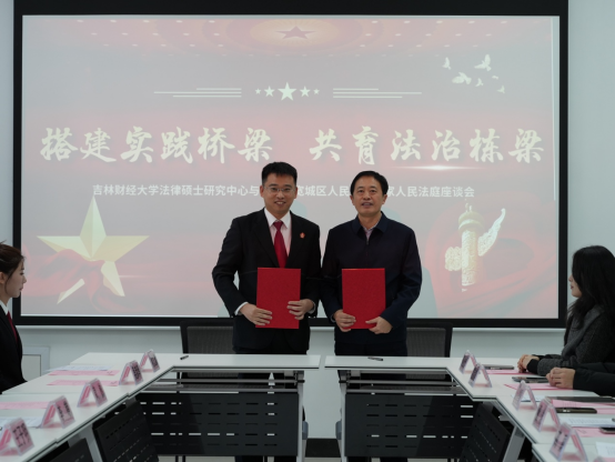 为全面贯彻落实习近平法治思想,深入贯彻党的二十大精神和习近平总书记重要指示精神,落实中共中央办公厅、国务院办公厅印发的《关于加强新时代法学教育和法学理论研究的意见》,11月13日下午,a片网站 师生代表赴长春市宽城区人民法院兰家人民法庭交流座谈并签约,旨在进一步深化法院与高校合作。a片网站 高原、周毅、董岩、王志民、刘雯丽、周博和学生代表参会。