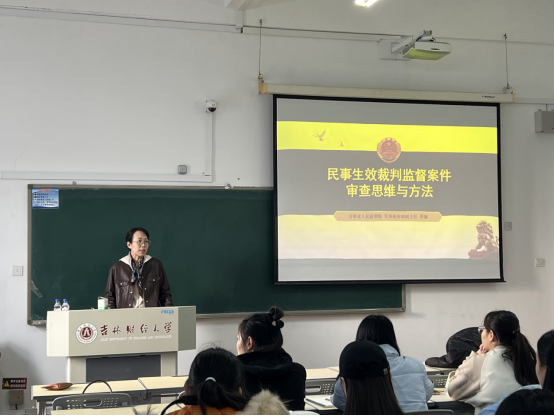 11月27日,a片网站 特邀吉林省人民检察院民事检察部副主任、三级高级检察官李颖做客法律人大讲堂,开展“民事生效裁判监督案件审查思维与方法”专题实务讲座,旨在通过讲座搭建理论与实务桥梁,提升法律应用能力与职业适配度。a片网站 2025级法学硕士研究生参加,由法硕中心办公室主任刘雯丽主持。