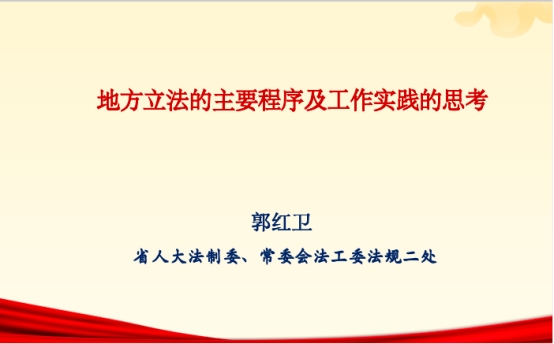 郭红卫处长系统梳理了地方立法工作的核心内容,包括地方立法工作的重要意义、主要依据,与吉林省开展地方立法工作的主要程序、地方立法工作的一些思考。郭红卫处长从全面推进依法治省的宏观背景切入,系统梳理了吉林省人大常委会制定地方性法规的完整流程,清晰勾勒出“法规案提出——审议——表决”的立法全景图,帮助学生构建完整的程序框架认知。讲座聚焦于立法实战技术,特别是人大在复杂立法环境中的关键作用,深入剖析了主任会议、专门委员会、法制工作委员会的角色分工与关键节点控制。立法技术部分,郭处长从政治站位、人民立场、科学立法三大维度,详细阐述了提高立法质量应掌握的核心能力。